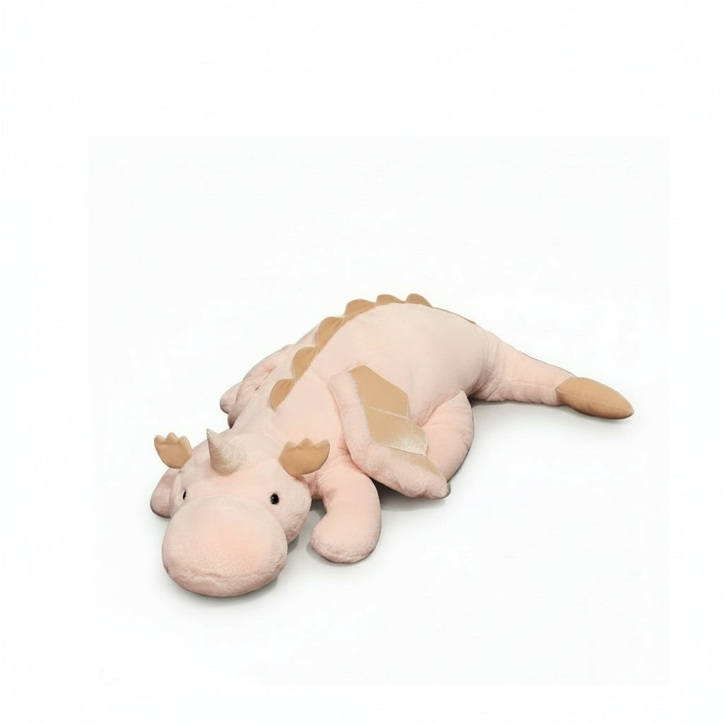 Laissez-vous émerveiller par Dragon'Câlin , la peluche dragon géante blanche et rose ornée d'une corne de licorne et de superbes ailes magiques !